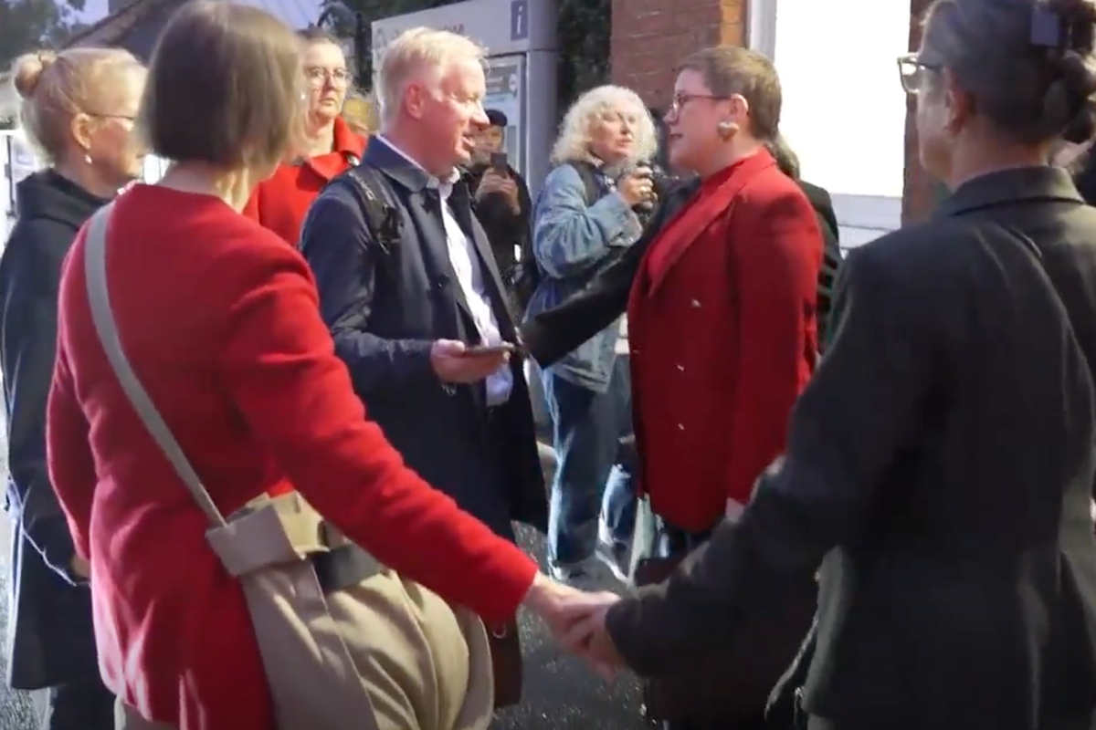 Footage shows a group of women approaching Mark Thurston at Coulsdon South station before surrounding him and holding hands in a circle to prevent him from leaving.